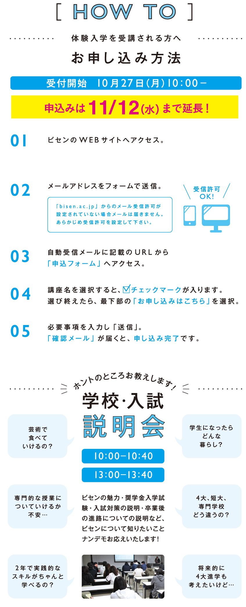 ビセンを選んだワケいろいろな進学先を検討して芸大も受験・合格しましたが、「自分の知識が少ないから、少人数で密に教われる方がいい」と考えてビセンへ。実際に、想像していたよりもずっと必要な知識や技術が多く、一つひとつ丁寧に教われるこの学校で良かった、と安心しています。 -