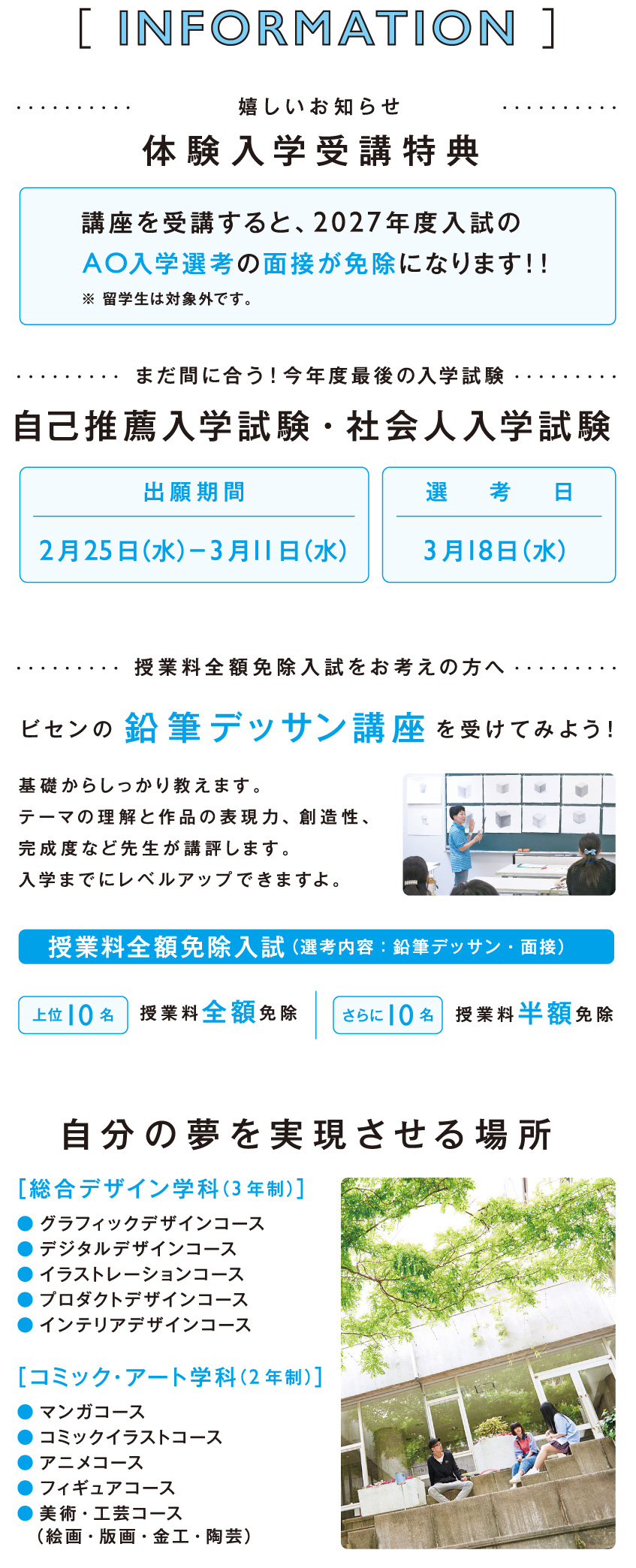 このコースを選んだワケ3年制だけど大学と同レベルに学べる、と感じてビセンへ。少人数なので液晶タブレットなどの新機材もたっぷり使えるし、映像やウェブのほか、プログラミング、立体フィギュア制作、ロゴマークづくりなど学びも多彩。いろいろなコースのいいとこどりを満喫しています。 -
